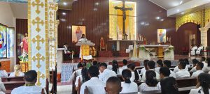 Perayaan Ekaristi berlangsung dalam suasana syukur dan penuh semangat kaum muda. Dalam pengantar Misa, Rm. Yudel Neno menegaskan pentingnya kesadaran kritis OMK di tengah percepatan dunia dan kuatnya pengaruh media sosial. Menurut dia, OMK tidak cukup hanya hadir sebagai kelompok usia muda dalam Gereja, tetapi perlu tumbuh sebagai subyek pelayanan yang sadar, aktif, dan mampu bekerja dalam semangat mitra.