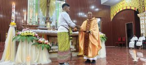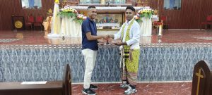 Penyerahan Simbolik dari Moderator OMK Paroki Rm. Yanner Uskenat ke Ketua OMK Terlantik
