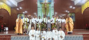 Pastor Paroki Noemuti berpose bersama Ketua OMK Terlantik